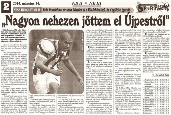 Ne irigyeljék ezt a fiút! Az éppen ma 24 esztendős fedezetnek meg kell birkóznia azzal, mint ifjabb Nyilasi Tibornak, Nyilasi Bálintnak, Törőcsik Attilának vagy éppen ifjabb Ebedli Zoltánnak. Az állandó összehasonlítás az élete részévé vált, mert a szurkoló már csak olyan, hogy Törőcsik Andrást, a népszerű Kesét látta a budaörsi, soroksári vagy szigetszentmiklósi mezt öltő Attila fiában, ahogy az annak idején a Fradiban pallérozódó Bálintban is a nagy „Nyilt” keresték, kutatták minduntalan. Erős Károly az NB III, Közép-csoportjában szereplő FC Dabas edzője, az ősz második felében, Dajka László lemondása után vette át a csapatot a korábbi segítő. A társulat pedig megindult felfelé, ám meglehet, a csúcsra járatás a tavaszra marad. Kell hozzá sok-sok munka, csapategység, meg persze fegyelem, ami Erős Károlynál alapkövetelmény. Erős Ronald jól ismeri a 46. életévében járó szakembert, hiszen az édesapja. Az élet olykor furcsa kanyarokat vesz, márpedig jelen állás szerint úgy tűnik, a nagy munkabírású, agresszív, sokat futó fedezet lehet tavasszal az FC Dabas kullancsa, amely szívja a rivális labdarúgóinak vérét, és ha az erejéből telik, a támadásokat is támogatja, elősegíti. Ha az apja az edző, könnyű neki – ezt mormolhatja a szurkoló, csakhogy aki ismeri Erős Károlyt, pontosan tudja, a saját fiától sokkal, de sokkal többet vár el, mint bármelyik futballistájától. A rakkolás, a megállás nélküli párharc-keresés az alap, minden más csak a ráadás. Ne irigyeljék ezt a fiút!