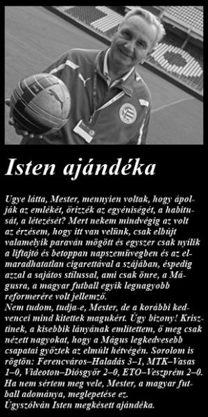Március 13-án, hétfő délután a Kossuth Kiadó és az MTK Budapest szervezésében az Új Hidegkuti Nándor Stadionban került sor Verebes Krisztina Az én mágusom, Verebes József című kötetének bemutatójára. A Foci a köbön a helyszínen járt.
