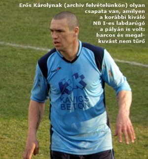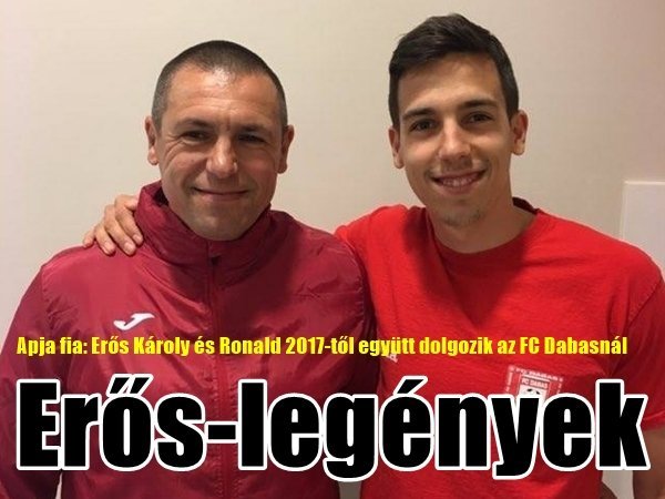 – Nem szokványos ez a történet, bár annyi előzménye van, hogy amikor Újpesten nevelkedett a fiam, két évig voltam a segédedzője, hiszen Mundi Viktor volt a vezetőedző, így testközelből tapasztaltam, milyen vele dolgozni – mondta Erős Károly, az FC Dabas 45 esztendős edzője, aki Albertirsáról indulva játékosként megfordult többek között a Vasasban, a BKV Előrében, a BVSC-Zuglóban, az MTK-ban, Újpesten, Siófokon, Kispesten, a Rákospalotai EAC-ban és Monoron is. – Akkor sem szóltam bele, hogy játsszon, vagy ne játsszon, mert úgy vagyok ezzel, akkor legyen a pályán, ha megérdemli. Most is így van, annyi különbséggel, hogy ezúttal már vezetőedzői titulusban vagyok. Jó teljesítményt nyújt a fiam, de természetesen, amikor a csapattal vagyunk, az edző–játékos viszony lép életbe. Érdekes volt, mert eleinte kérdezte, hogy szólítson? Elvégre, ha éppen zajlik a gyakorlat, mégsem kérdezheti meg, hogy „Apa, ez hogy van?”. Végül a Karcsinál maradtunk, és kicsit furcsa volt, amikor meccs közben kikiabált, hogy „Karcsi, most hogy legyünk?”. Hála Istennek, nincs gond, az persze más kérdés, ha nem jöttek volna az eredmények, akkor tudjuk, hogy a magyar közeg milyen, azaz lehetett volna probléma.
