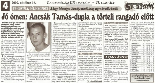 A 30 esztendős támadó – akiről részletesen lentebb, a cikkre kattintva olvashatnak – vasárnap, a Törökbálint ellen mindössze hetedszer lépett pályára a jelenleg futó évadban, márpedig ebből a tényből kiindulva már nem is annyira meglepő, hogy eddig nem volt eredményes. A csatár a legutóbbi szezonban a(z akkor még megyei harmadosztályban szereplő) Tököl II. színeiben 22 bajnokin 32 alkalommal ünnepelhetett, ami megsüvegelendő produkció. Az is, hogy a pontvadászat egyik legjobbját – hangsúlyozandó, csak az eredmény alapján – könnyedén győzte le a Tököl II. Az a csapat, amely – mint arról nemrégiben hírt adtunk – legutóbb Ráckevén kapott ki 6–1-re… Hogy melyik a társaság igazi arca, azt talán még a Futó Tamás–Hollik András edzőpáros sem tudja, mindenesetre a 4–1-es diadal több mint figyelemfelkeltő. Az meg pláne, hogy Ancsák Tamás a 43. és a 86. minutumban is bevette Vermesy Attila kapuját.