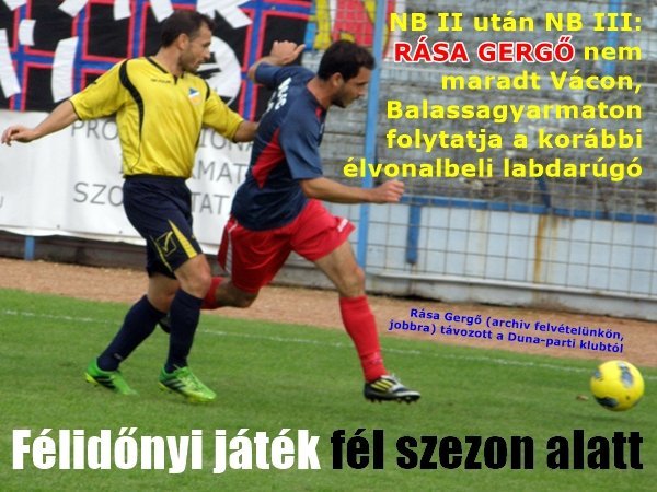 BALASSAGYARMAT » A bajnoki cím helyett a kiesés elkerüléséért küzdhet. Csakhogy nem az NB II-ben, hanem az NB III, Keleti csoportjában, merthogy az MTK-ban és Újpesten pallérozódó, később a REAC-ban, a Videotonban és Pápán is megforduló korábbi NB I-es labdarúgó, Rása Gergő távozott az ősz egyik legkellemesebb meglepetését okozó Vác FC-től.