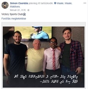 „Kiss László immár két hete kinn van a Maldív-szigeteken, és miután a vezetők is rábólintottak, Simi szerdán utazott ki és csütörtökön érkezett meg – adott helyzetjelentést Csordás József. – Éppen ma volt az első bajnokijuk, és bár 1–0-ra vezettek a szünetben, végül 4–1-re kikaptak, csakhogy az ellenfélnél játszott négy brazil, nem mellesleg a vetélytárs három hónapja készült, a fiam csapata meg csupán három hete, ami nagyon nem mindegy. Simi azt mondta, a hőséggel nagyon meg kell küzdeni, mert délután négy órakor negyven fok volt a hőmérséklet, ráadásul dinamikus, gyors és kemény az ottani futball, és minden csapatban sok külföldi futballozik. Náluk is van két spanyol, és akad, akinek közel húsz Bajnokok Ligája-meccse van. A fiam debütálásként hatvan percet játszott, de nagyon elfáradt, ami érthető, mivel két napja érkezett a magyar mínuszokból. Az egyik helyi portál egyébként Siminek adta a Victory találatát, lévén a röviden érkezett és vagy ő, vagy az ellenfél juttatta a kapuba a labdát, de az edzője is azzal intézte el, hogy ez a te gólod, Simi. Pénteken lehet javítani, könnyebb ellenfél következik.”