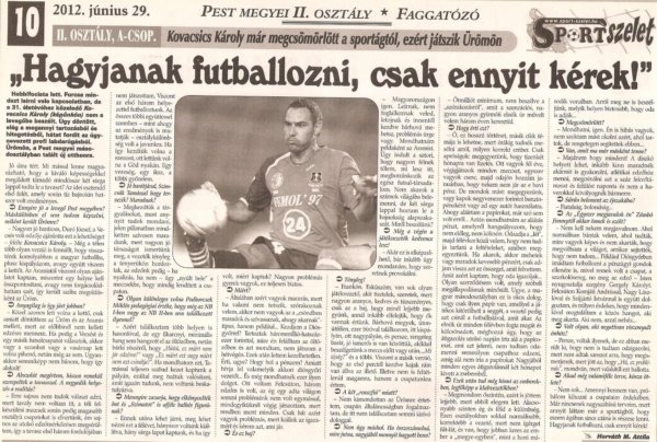Lejátszotta második bajnokiját is a Pest megyei III. osztály, Déli csoportjában szereplő Kakucs KSE színeiben az egykori NB I-es csatár, Kovacsics Károly, akivel lentebb, a cikkre kattintva szókimondó, tanulságos interjút olvashatnak. A 36 esztendős futballista alig másfél hete a Táborfalva otthonában – az egykori „megye-kettes” gárdák meccsén – 3–1-es vereséggel debütált, míg a magunk mögött hagyott hétvégén, a 22. forduló keretében hazai környezetben 3–2-es győzelemmel mutatkozott be a kakucsi szurkolóknak a Nyáregyháza első alakulata ellen. Kovacsics Károly egyelőre még nem volt eredményes új társulatában, de kvalitásait ismerve csupán idő kérdése, mikor törik meg a jég.