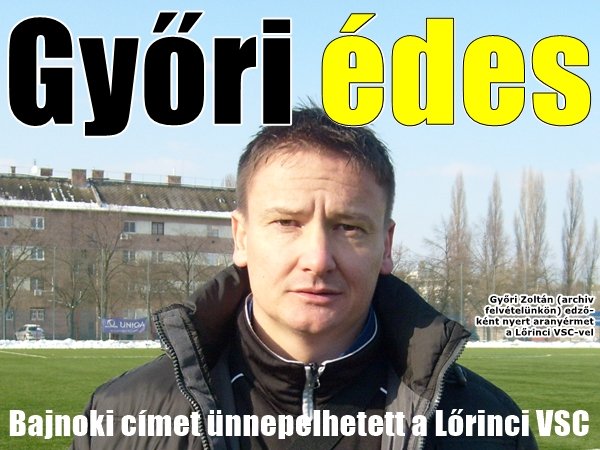 LŐRINCI VSC–VÁMOSGYÖRK 14–1 » Három játéknappal a szezon vége előtt, a 23. fordulóban matematikailag is bebiztosította a bajnoki címet a Heves megyei II. osztály, Nyugati csoportjának éllovasa, amelynek trénere nem más, mint az egykori kiváló élvonalbeli csatár, Győri Zoltán.