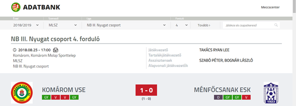 Vereségek Takács Ryan Lee közreműködésével » Bármennyire is hihetetlen, egyrészt a név nem Jackie Chan magyar megfelelőjét takarja, másrészt pedig a fentebb citált mérkőzéseket egyaránt Takács Ryan Lee vezette, avagy a sporttárs a ménfőcsanaki sorozat kezdeténél és végénél is jelen volt. Nézzék csak!
